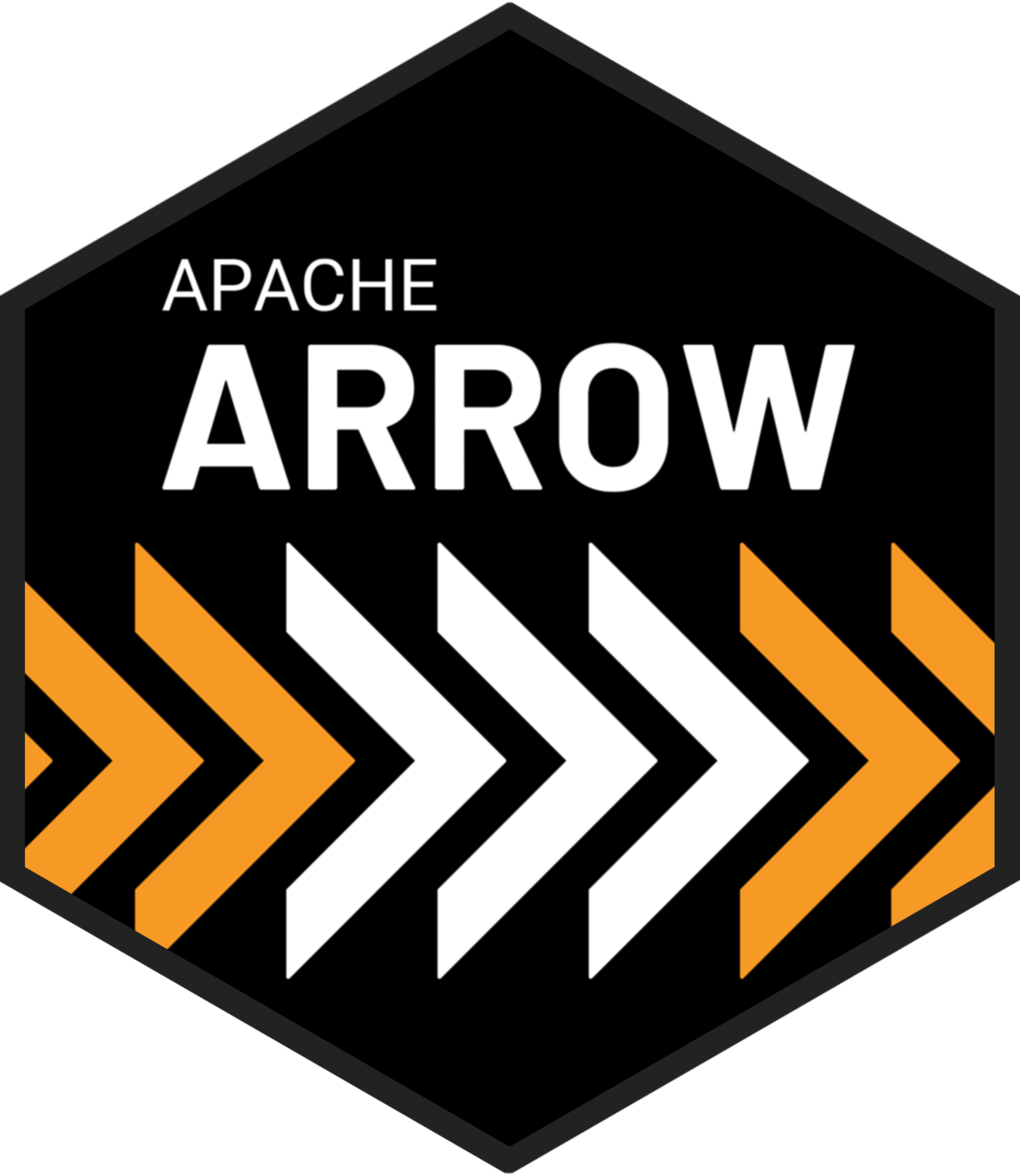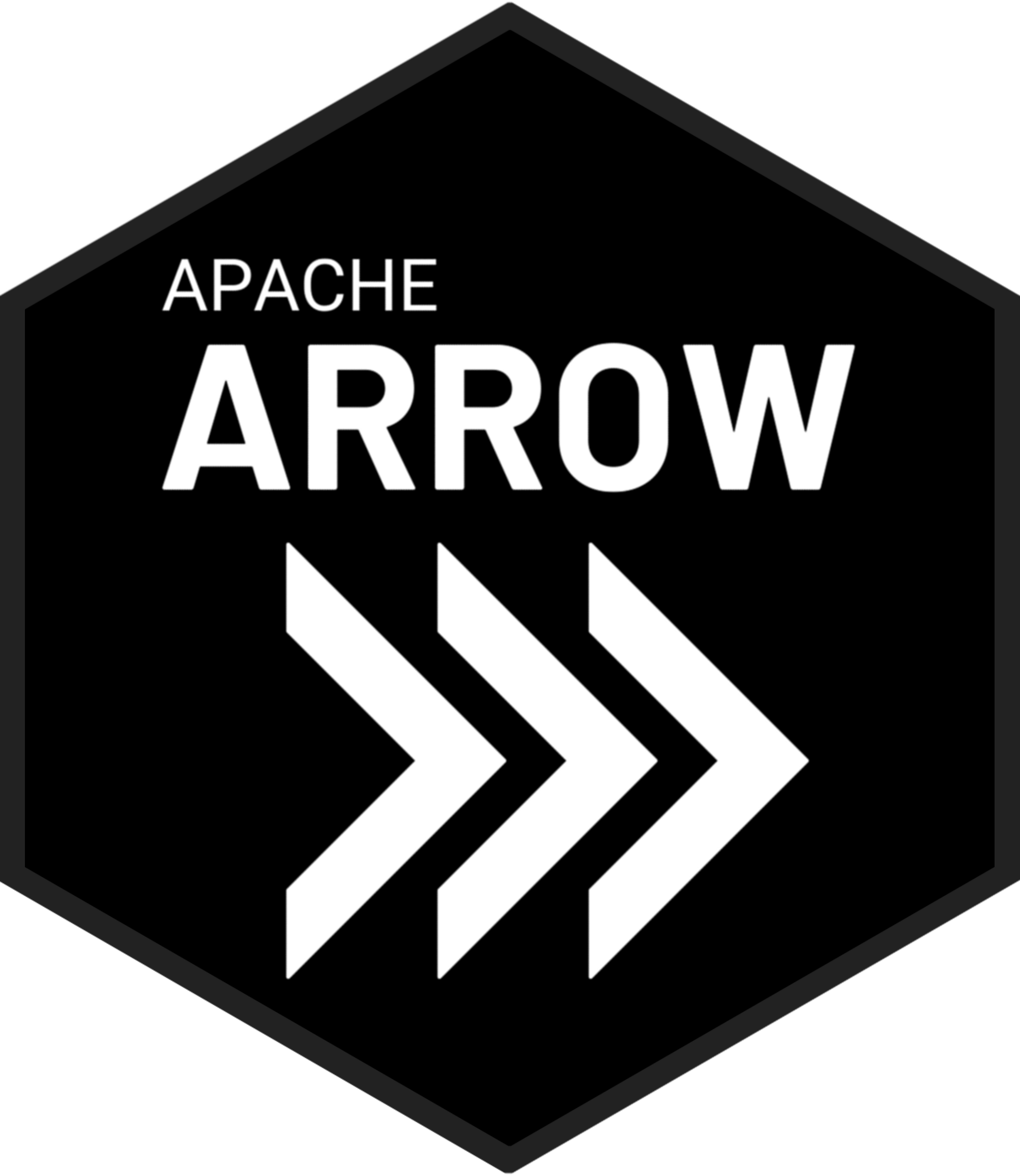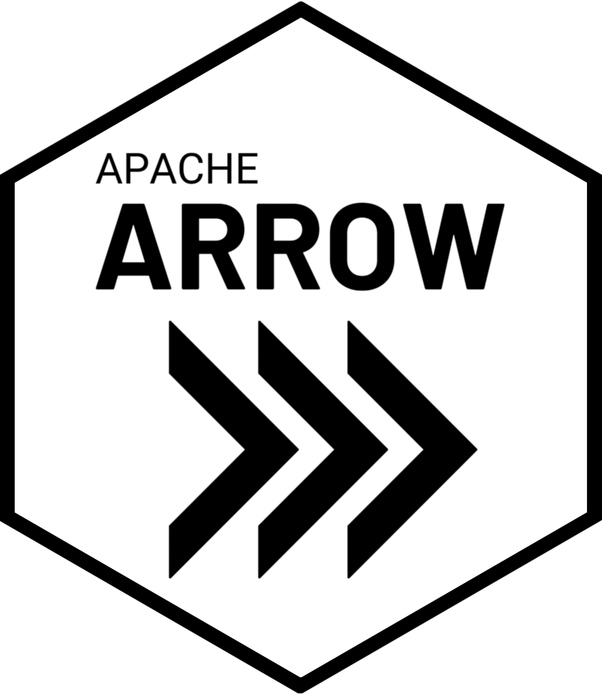 At the bottom of this page you can find the complete list of all logo-related files provided by the Apache Arrow project. The logo exists in a light theme and a dark theme, and these versions are usually simple inversions of one another. The light theme uses black text against a white (or other light colored) background: